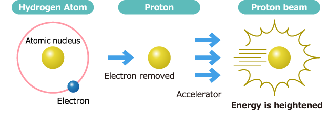 Protons constitute the nuclei of hydrogen atoms, and treatment that uses beams of protons accelerated to a high-energy state is called proton beam therapy.